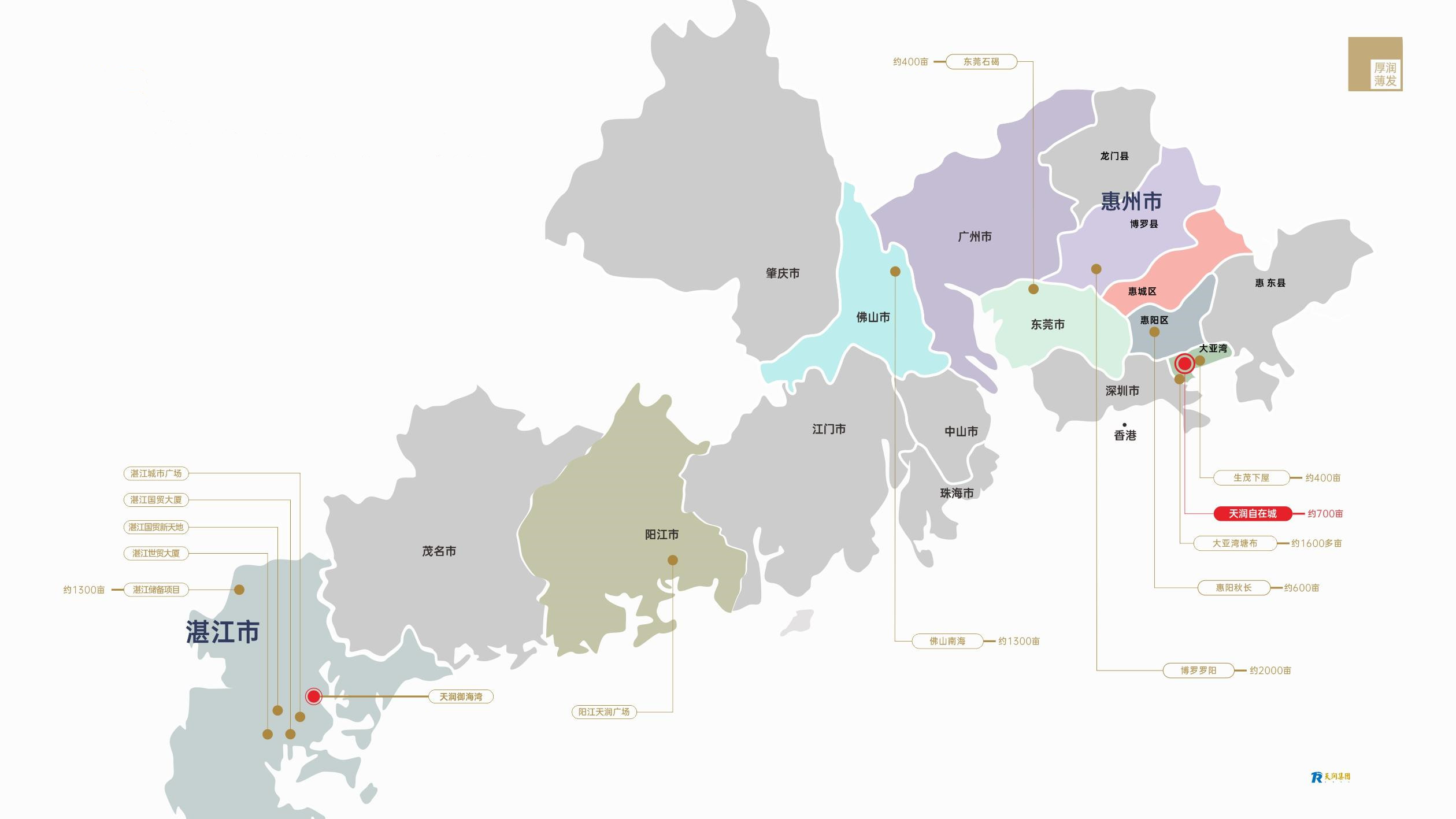 聚焦大湾区的更新改造,通过收并购、留用地合作开发,“三旧”改造(城市更新)等获取土地资源。截止2020年, 在大湾区已储备土地面积7000余亩。充足的土地储备为 实现持续性发展奠定了夯实的基础。